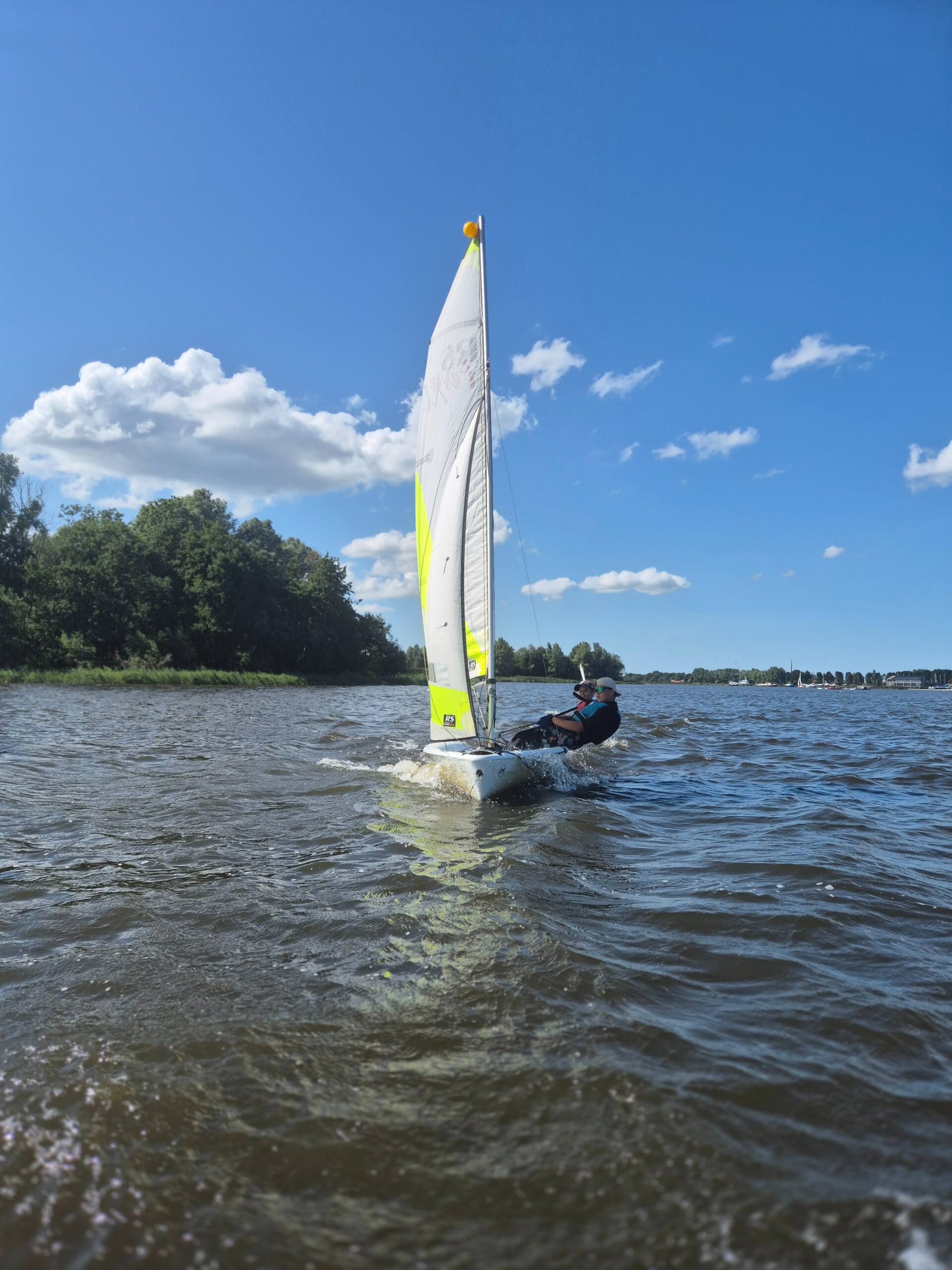 ‘s Ochtends word je gewekt door de walstaf en staat het ontbijt al klaar! Je kunt meteen aanschuiven en eet gezellig met z’n allen een goed ontbijt. Dan is het tijd om je wetsuit aan te trekken. Met de hele groep ga je de boten bij de botenhelling in het water leggen om daarna lekker te gaan zeilen! Op het water wordt er les gegeven vanaf het vlot of vanuit een motorboot. Jij zit (met je zeilgenoot) in de Topper Topas of RS Feva.