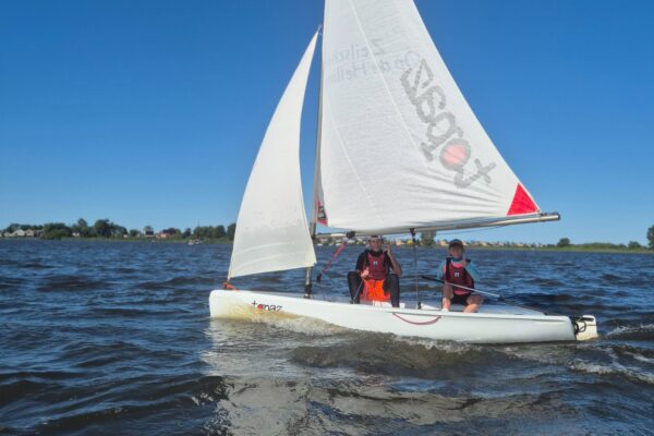 Het zeilkamp Zwaardboot Jeugd is een zeilkamp in snelle jeugdzeilboten voor sportieve zeilers. Prima als vervolg op de Optimist, maar ook geschikt voor beginners die het niet erg vinden om nat te worden. In de Topper Topaz en RS Feva vaar je met zijn tweeën. Je zit aan het roer of je helpt de stuurman/vrouw met het bedienen van de zeilen en de gewichtsverdeling. De Topper Topaz is een sportieve boot die lekker snel vaart en zelfs kan planeren. De RS Feva is voorzien van een gennaker (groot extra voorzeil) en daardoor nog iets sportiever.